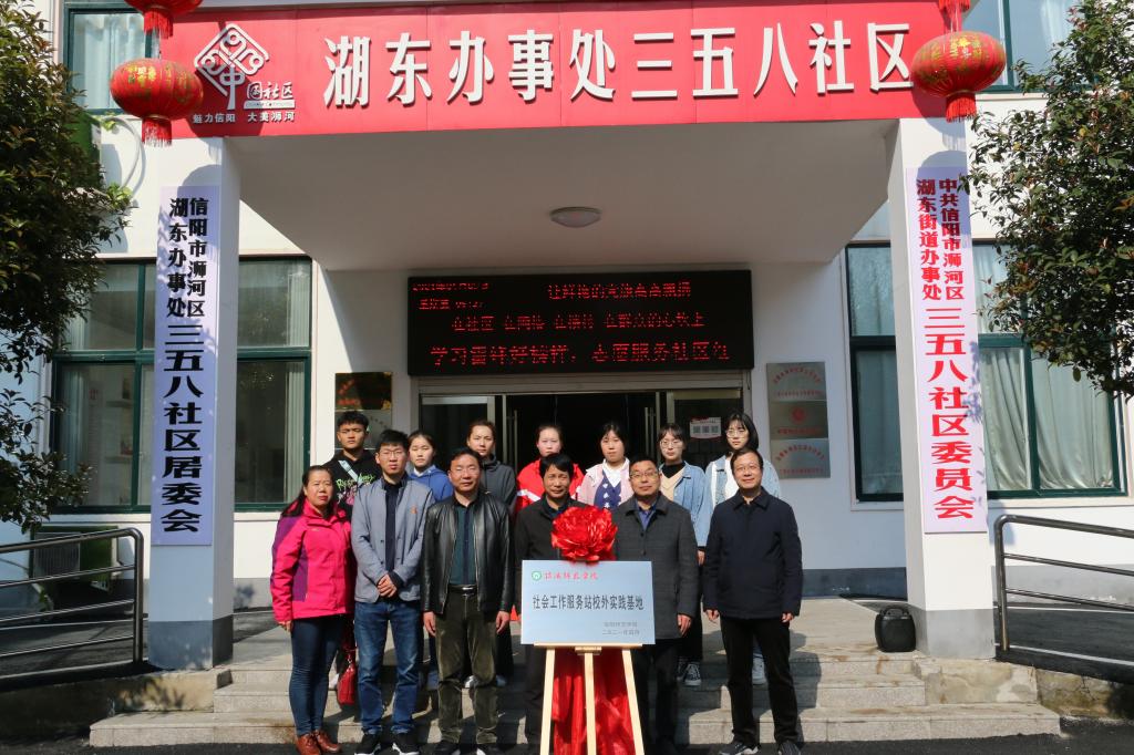 郭威在讲话中谈到,三五八社区是在原国营三五八厂破产的基础上,于2004年经浉河区人民政府批准设立,区域面积约1.1平方公里,2702户6457人。三五八社区成立之初,各类的社会矛盾较为突出,严重制约着社区的发展。十多年来,在湖东街道党工委的正确领导下,以社区党委为核心,以“让鲜艳的党旗高高飘扬在网格、在楼栋、在群众的心坎上,把辖区居民紧紧凝聚在社区党组织周围”为宗旨,让三五八社区彻底走出了企业破产时的一幅乱象。近年来社区先后荣获全国“志愿服务先进工作社区”、“综合减灾示范社区”、“全国五四红旗团支部”以及河南省“先进基层党组织”、“河南省抗击新冠肺炎疫情先进集体”“河南省文明单位标兵”、“河南省家风家教示范基地”等20余项国家、省、市级荣誉称号。随着城市发展及社会进程不断加快,社区工作人员工作能力及个人素质已不能满足现阶段广大人民群众对美好生活的向往。信阳师范色色视频 社会工作服务站校外实践基地在三五八社区及时落地,让我们社区注入了新鲜力量与血液。