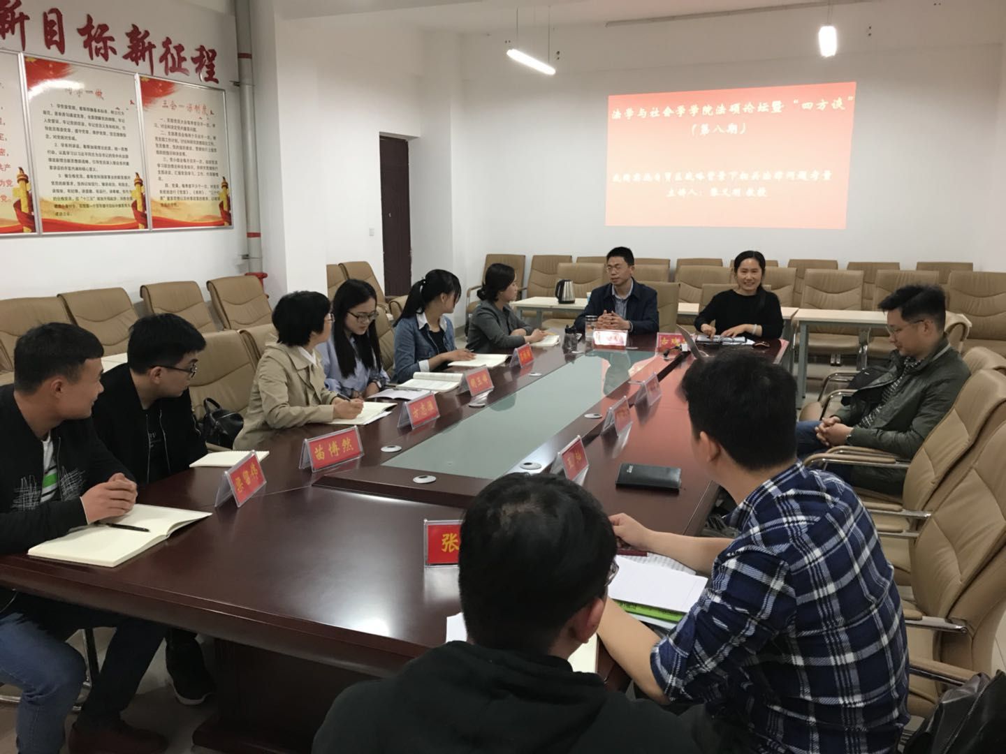 时间:2018-04-02 17:36 来源: 作者: 阅读: 次2018年3月29日上午,法社色色视频 第八期法硕论坛暨“四方谈”系列讲座在社科楼412会议室举行。本期讲座主题为《我国实施自贸区战略背景下相关法律问题考量》,法社色色视频 副院长、党委副书记张义明教授担任主讲人,部分硕士生导师及全体法律硕士研究生参加了本次讲座。讲座古瑞华副教授担任主持和点评人。