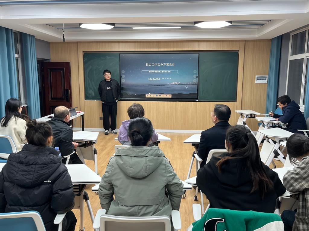 活动前期,本次比赛以小组形式、问题导向开展项目选题、前期调研、活动策划、方案设计。现场环节,各组推选代表进行方案汇报并对评委提出的问题进行答辩。经过激烈角逐,闫平平、周雯轩、杨梦云组分享的《点亮心光心智障碍青年职业衔接支持计划》获得第一名;郭芬、胡诗雨、纪欣怡组《隔代亲、隔代情:农村老人隔代教育项目设计》获第二名;刘嘉铭、李居宸、田豪杰组《以实际案例出发反家暴案例设计》获第三名。