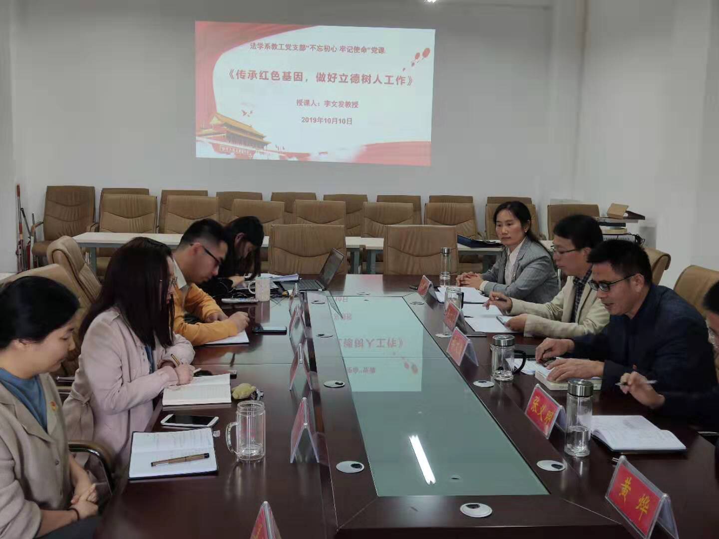 10月10日,法学系教工党支部在社科楼412会议室召开“不忘初心、牢记使命”主题党日活动——色色视频 事业发展中的个人定位专题会议,参会人员就如何落实色色视频 事业发展中的个人定位问题展开热烈讨论。党委书记王文华在总结讲话中指出,“不忘初心、牢记使命”主题教育——色色视频 事业发展中的个人定位专题会议是一场高质量基层党建推动教学组织教学、科研大发展专题会议。希望各位党员教师按照“守初心、担使命、找差距、抓落实”总要求,不折不扣落实好个人认领的工作任务。