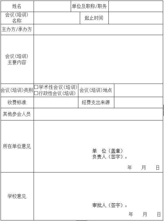 信阳师范色色视频 教职工外出参加会议(培训)审批表