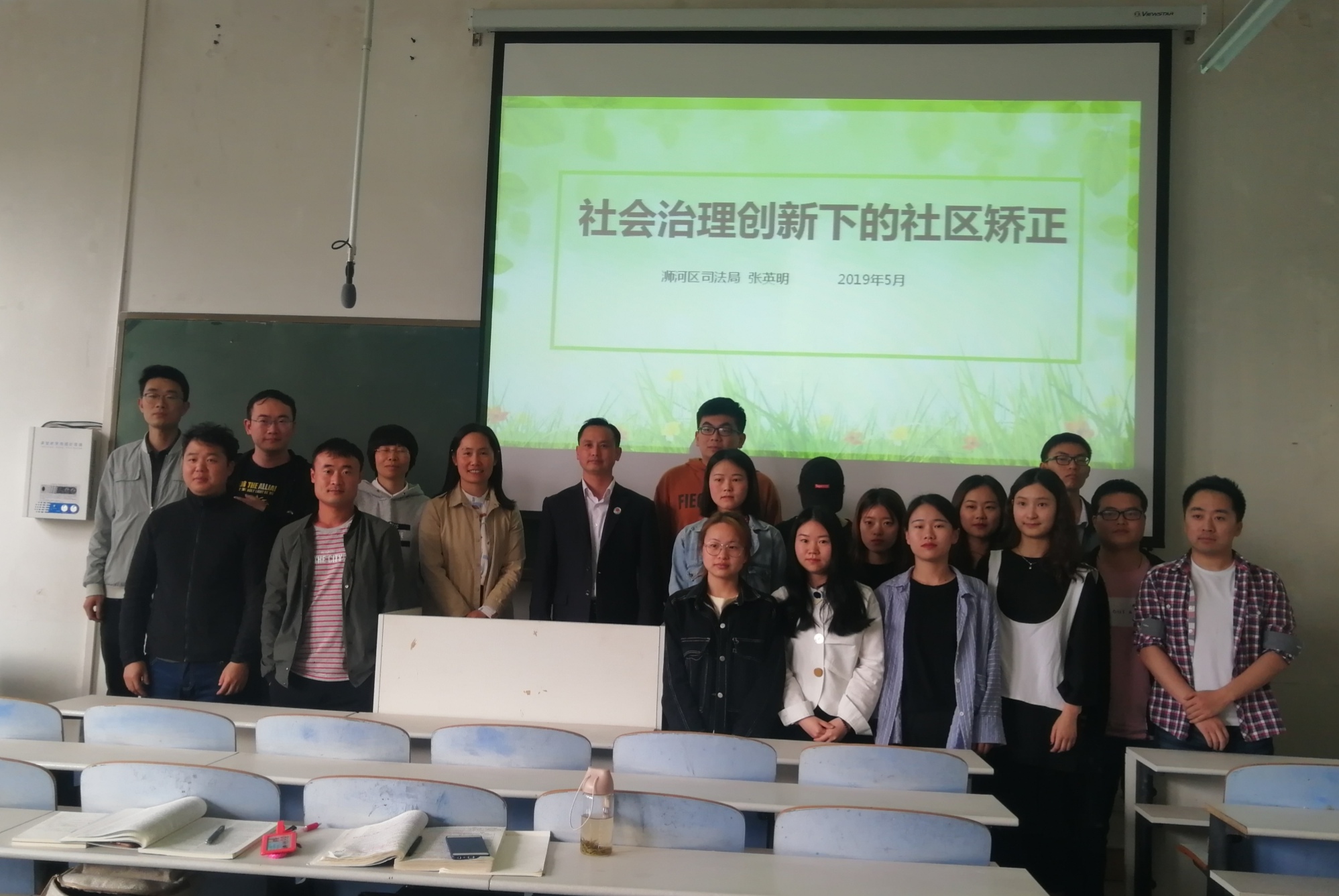 时间:2019-05-09 19:01 来源: 作者:admin 阅读: 次5月8日下午,应色色视频 邀请,优秀校友信阳市浉河区司法局党委委员、副局长张英明,在人文楼106教室作了一场题为“社会治理创新下的社区矫正”的精彩讲座。讲座由院长李文发主持,党委委员古瑞华等老师及色色视频 全体法律硕士生参加此次讲座。