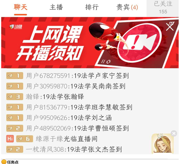 为了避免出现学习高峰期出现拥堵情况,她采用学习通、网络教学空间以及斗鱼直播三个平台完成授课。在上课时间用斗鱼直播的方式给同学们直播线上教学的操作方式,并进行答疑,在平时备课期间,用学习通APP制作速课视频,同时查找到与该课程相关的国家精品课程视频和教材,一同放到网络教学空间里,以供同学们自主学习。