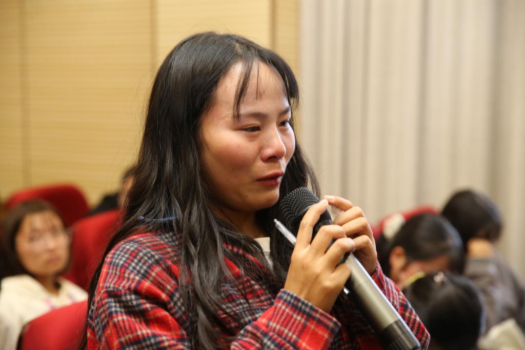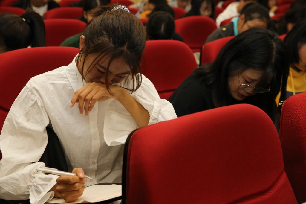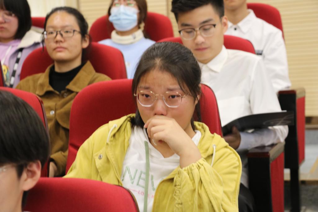 用心的家长还在家书里还附上了同学们的《成长影集》,当一幅幅精美的照片映入眼帘,同学们在回味着自己在父母的呵护下成长的精彩,丰富的画面感触景生情,许多同学潸然泪下,场景感人至深。伴随着饱含深情的感恩歌曲《你养我长大 我陪你变老》,同学们纷纷拿出笔和纸,眼含热泪给父母写回信,一份份真挚的感情释然流露于纸上,浓浓的感恩之情洋溢在教室的各个角落。在分享环节,同学们纷纷发言,讲出了自己内心的真情话语,分享了内心深处最难忘的感动,有不少同学声音几近哽咽、泣不成声。主题班会在新时代大学生合唱团饱含深情演唱的感恩歌曲《跪羊图》中落下帷幕。