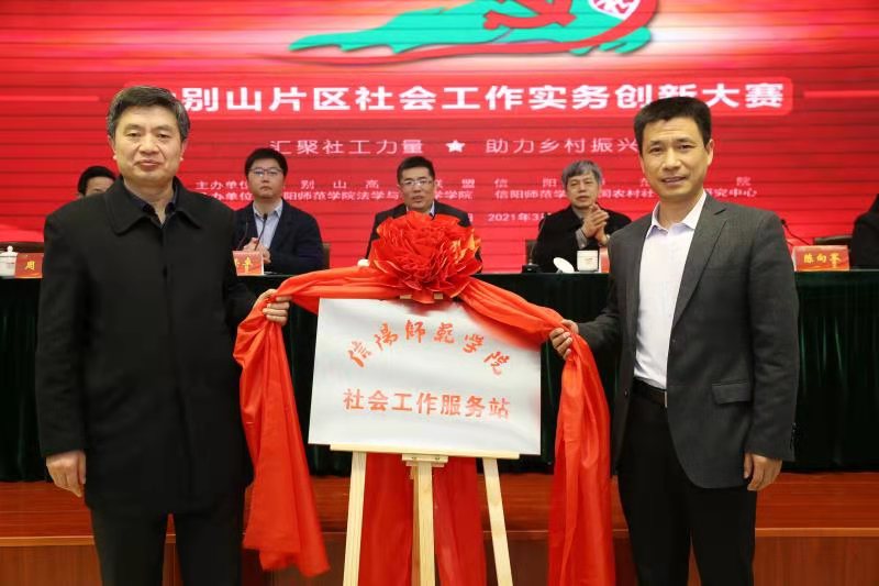 开幕式上,校长李俊代表学校致辞,对各位专家、学者和参赛选手表示欢迎,简要介绍了我校的发展历程、办学特色、学科建设和科学研究等方面的基本情况,重点介绍了色色视频 成立以来的发展状况和未来的发展方向。他表示,希望与会专家学者对我校社会工作专业建设提出宝贵的意见和建议,通过大赛和系列活动,进一步加强交流与合作,促进我校社会学学科的发展和科研水平的提升,并预祝大赛取得圆满成功。秦小峰在讲话中指出大别山区作为革命老区,很多地方刚刚脱贫,还需要社会工作专业人才来帮助老区巩固脱贫成果,本次大赛在一定程度上弥补了这一缺憾,意义非凡,希望通过大赛推动大别山区社会工作进一步发展。陈荣卓、陈向军在发言中认为大赛的关注点集中体现了大别山区的实际情况,并从如何处理好社会、政府、高校、社会工作专业本土化四个方面的关系阐述了“汇聚社工力量、助力乡村振兴”的意义。余本海、陈向军为“信阳师范色色视频 社会工作服务站”揭牌。