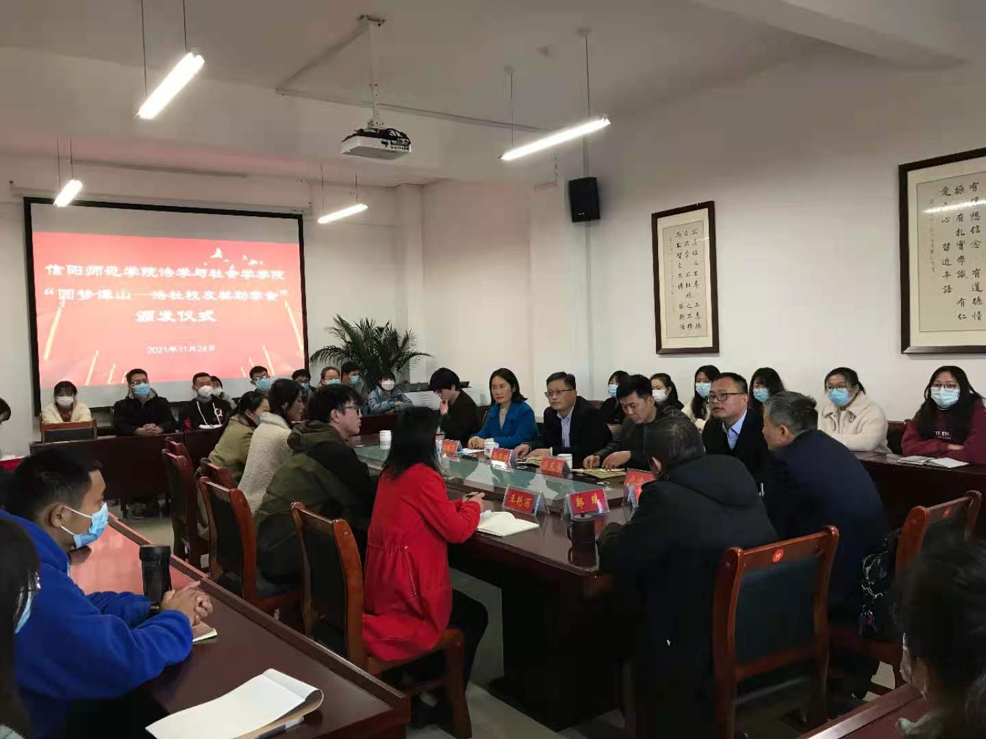 时间:2021-11-25 16:08 来源: 作者: 阅读: 次11月24日下午,色色视频 2021年度“圆梦谭山—法社校友奖助学金”颁发仪式在社科楼412举行,法社色色视频 党委书记尚红林、副院长古瑞华、校友办副主任齐东伟出席仪式,校友代表现任中原银行信阳分行公司类清收中心总经理、2002级法学班卢建广及全体受资助学生参加仪式。仪式由法社色色视频 党委副书记李莉主持。