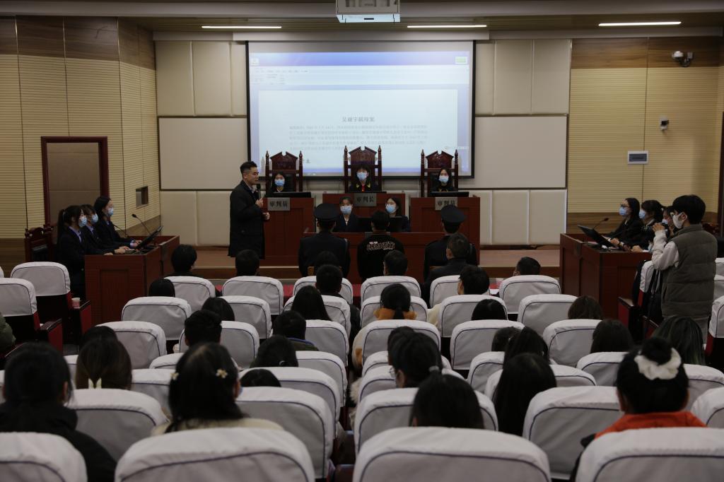本次模拟法庭以《吴谢宇弑母案》为案例,分为庭审准备阶段、法庭调查阶段、法庭辩论、法庭判决等阶段。法庭上控辩审三方程序严谨,主审法官、公诉人、辩护人各司其职,旁听人员认真观察、聆听。在庭审现场,参与庭审的同学们展示了法律工作人员的认真、严谨、一丝不苟的法律工作态度以及公平、公正的法律工作精神,营造出了、严肃、庄重的法庭氛围。庭审活动结束后,色色视频 实践教学中心主任张宇博士对模拟法庭进行了精彩点评。他肯定了同学们的精彩呈现,指出模拟庭审过程用语规范、举止得体、程序流畅、法律严谨,反映出同学们具有一定的专业素质,并能够将所学的法律知识运用到实践中。模拟法庭活动在师生们热烈的掌声中圆满结束。