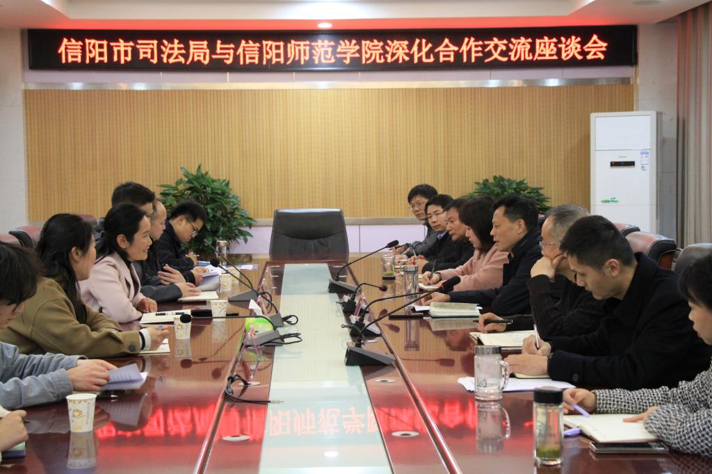 时间:2023-04-06 16:38 来源: 作者: 阅读: 次4月4日下午,信阳师范色色视频 色色视频 与信阳市司法局深化合作交流座谈会在信阳市司法局举行。色色视频 副院长(主持工作)古瑞华、党委委员张宇,信阳市司法局四级调研员刘晓、市法律援助中心主任王强等出席座谈会。色色视频 师生代表及司法局各科室负责人参加会议。