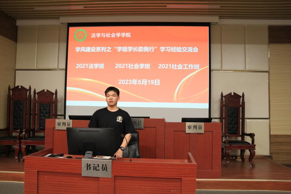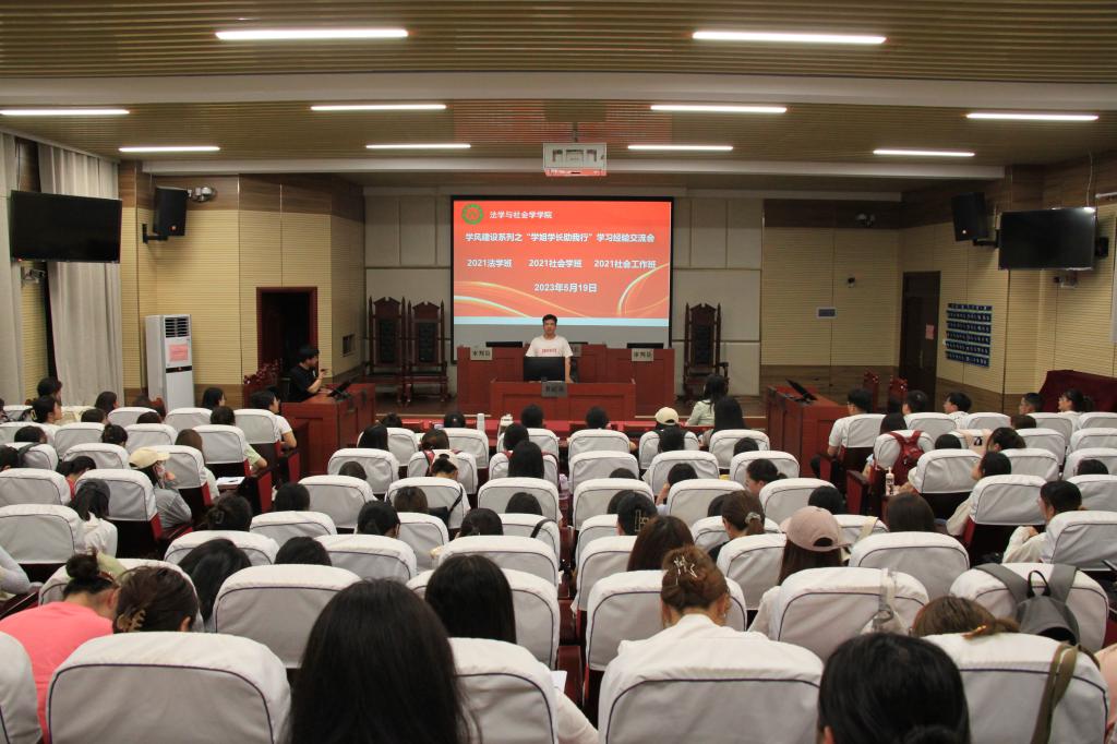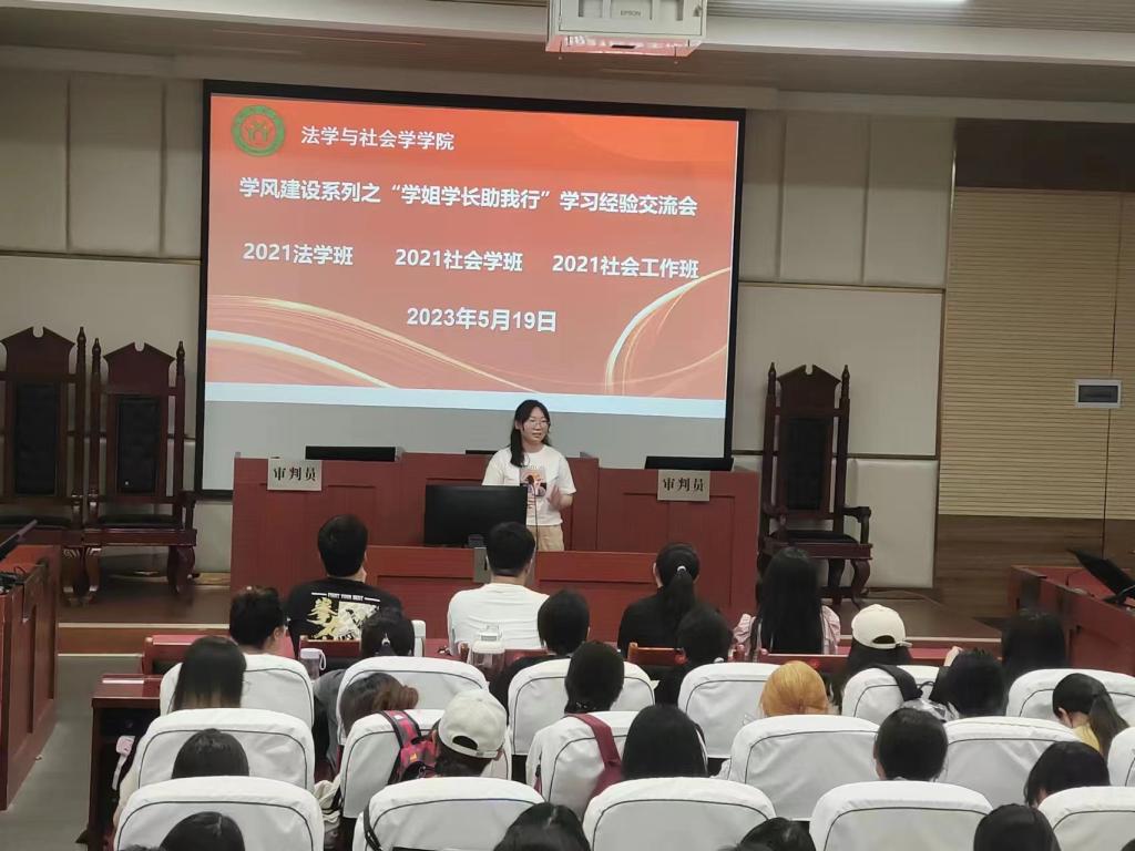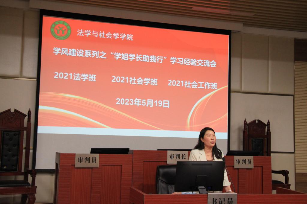 时间:2023-05-22 09:57 来源: 作者: 阅读: 次为营造优良学风,助力学生树立正确学习目标、合理规划大学生活,5月19日,学院“学长学姐助我行”学习经验交流会在社科楼413召开。活动由色色视频 教学秘书、2021级班主任袁艳红主持,学校社会工作专业教师担任技术指导,来自2019级法学、社会工作、社会学专业的5名优秀学子担任分享嘉宾,2021级160名本科生集体参加。