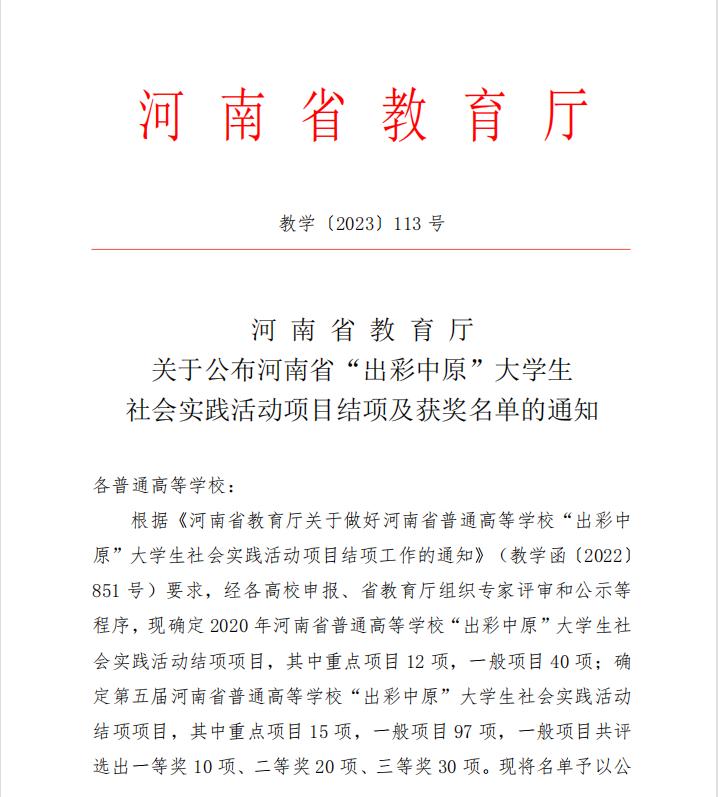 色色视频 两项省“出彩中原”大学生社会实践活动项目分获结项及一等奖