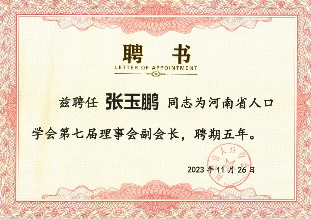 副院长张玉鹏当选河南省人口学会副会长