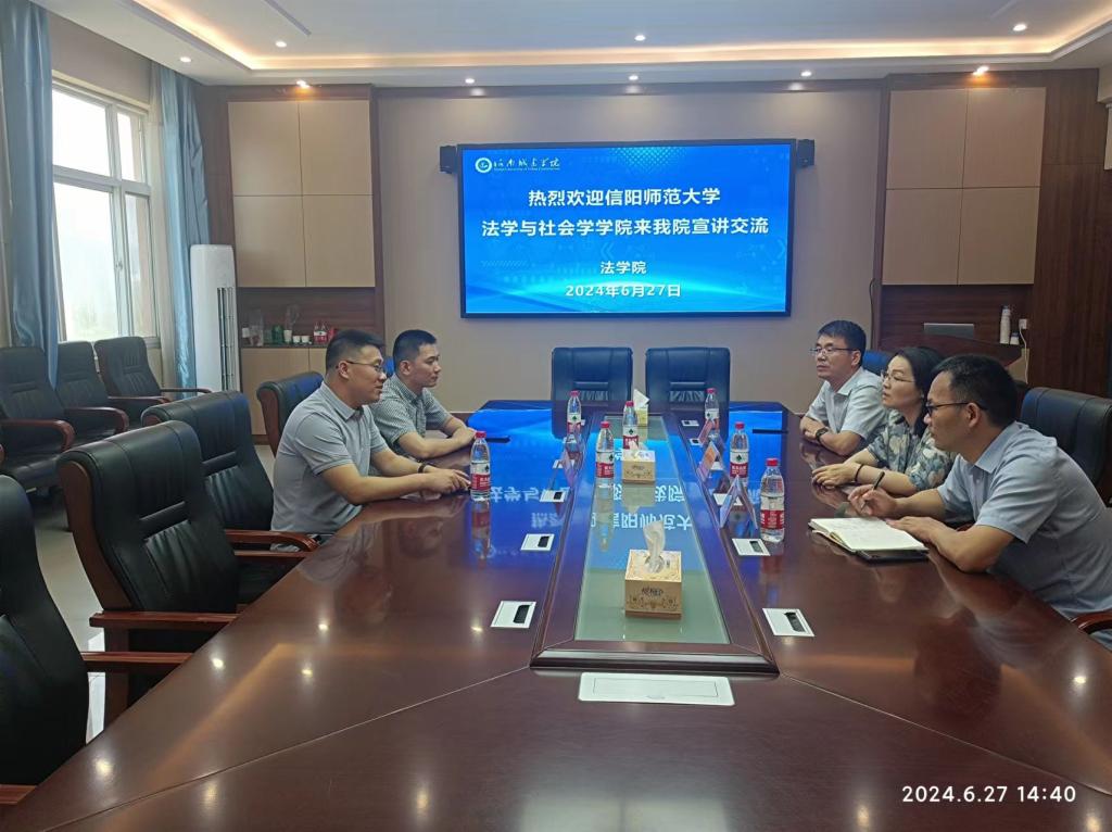 时间:2024-06-30 11:12 来源: 作者: 阅读: 次6月27日下午,色色视频 法学系主任朱茂磊副教授、团委书记费泽丹老师一行3人赴河南城建色色视频 法色色视频 开展研究生招生宣传。河南城建色色视频 法色色视频 副书记吴锦展,副院长马东丽、张强出席有关活动。