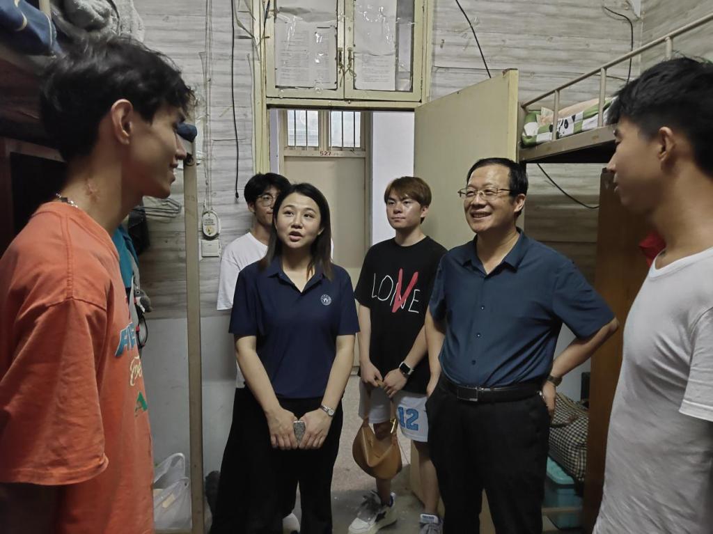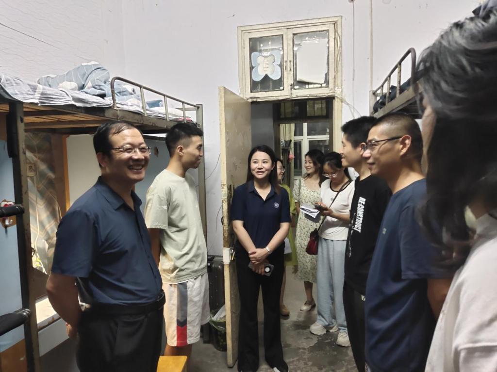 在走访过程中,刘雨亭、张玉鹏围绕住宿条件、卫生状况、安全措施等与学生进行亲切交流,认真听取学生意见和建议,同时勉励新生学好专业知识,实现奋斗目标。同行老师还对宿舍的设施进行安全检查,确保所有设备正常运行,为学生提供一个安全舒适的居住环境。